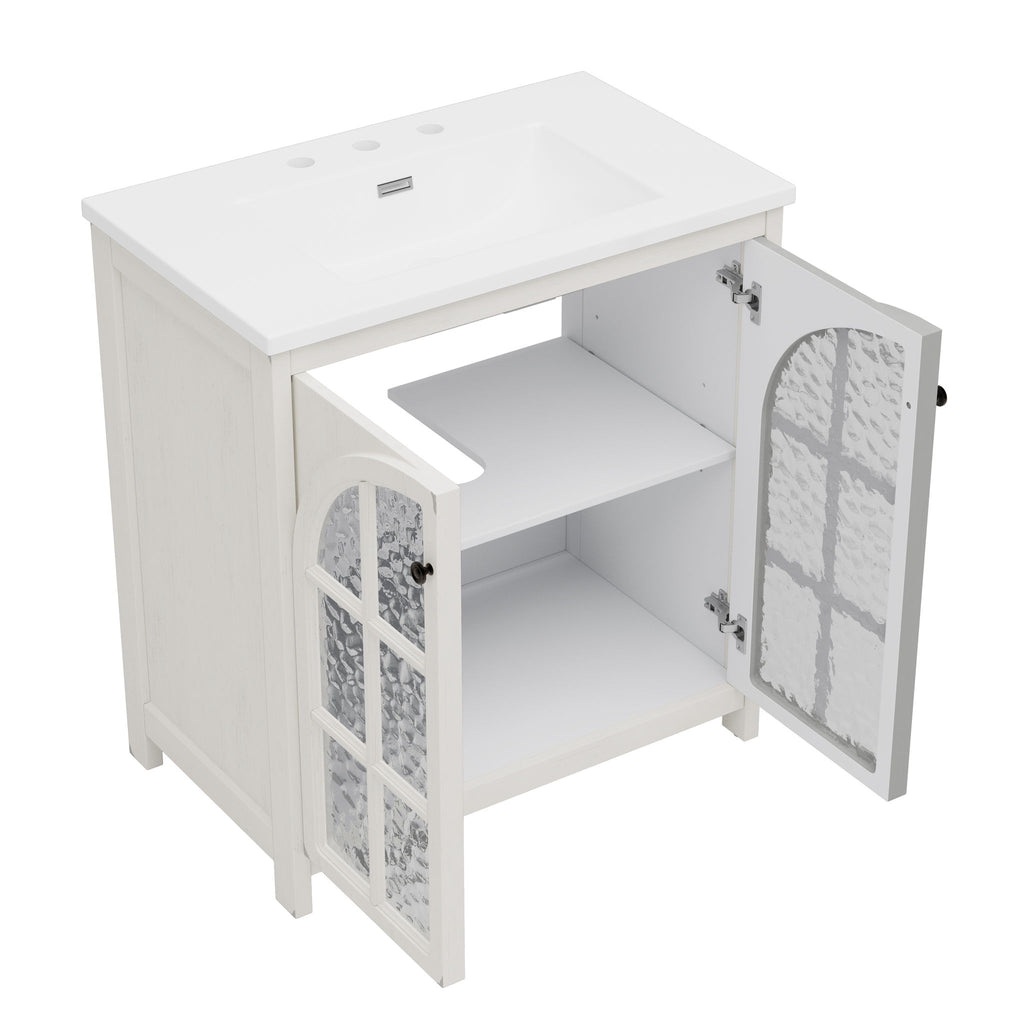 Bathroom Vanity With Sink, Soft Closing Doors - Antique White