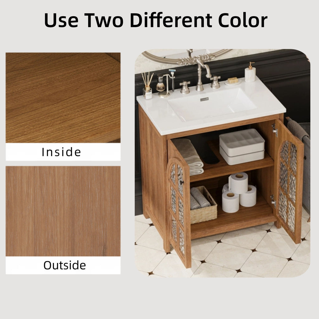 Bathroom Vanity With Sink, Soft Closing Doors - Antique Natural