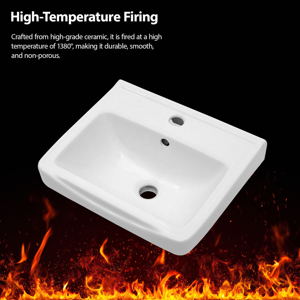 Wall Mounted Bathroom Sink With Towel Bar & Overflow - White / Black