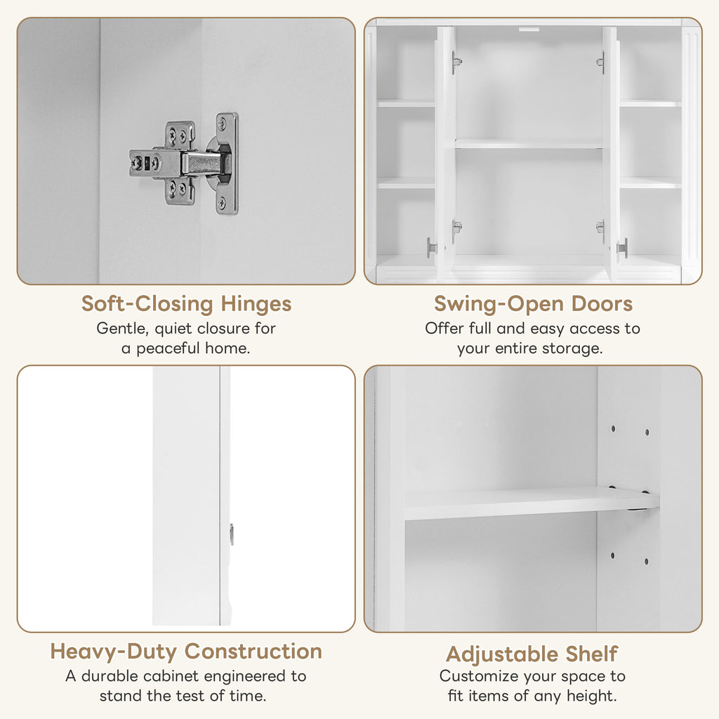 Wall-Mounted Medicine Cabinet With Adjustable Shelf, Soft-Closing Hinges - White