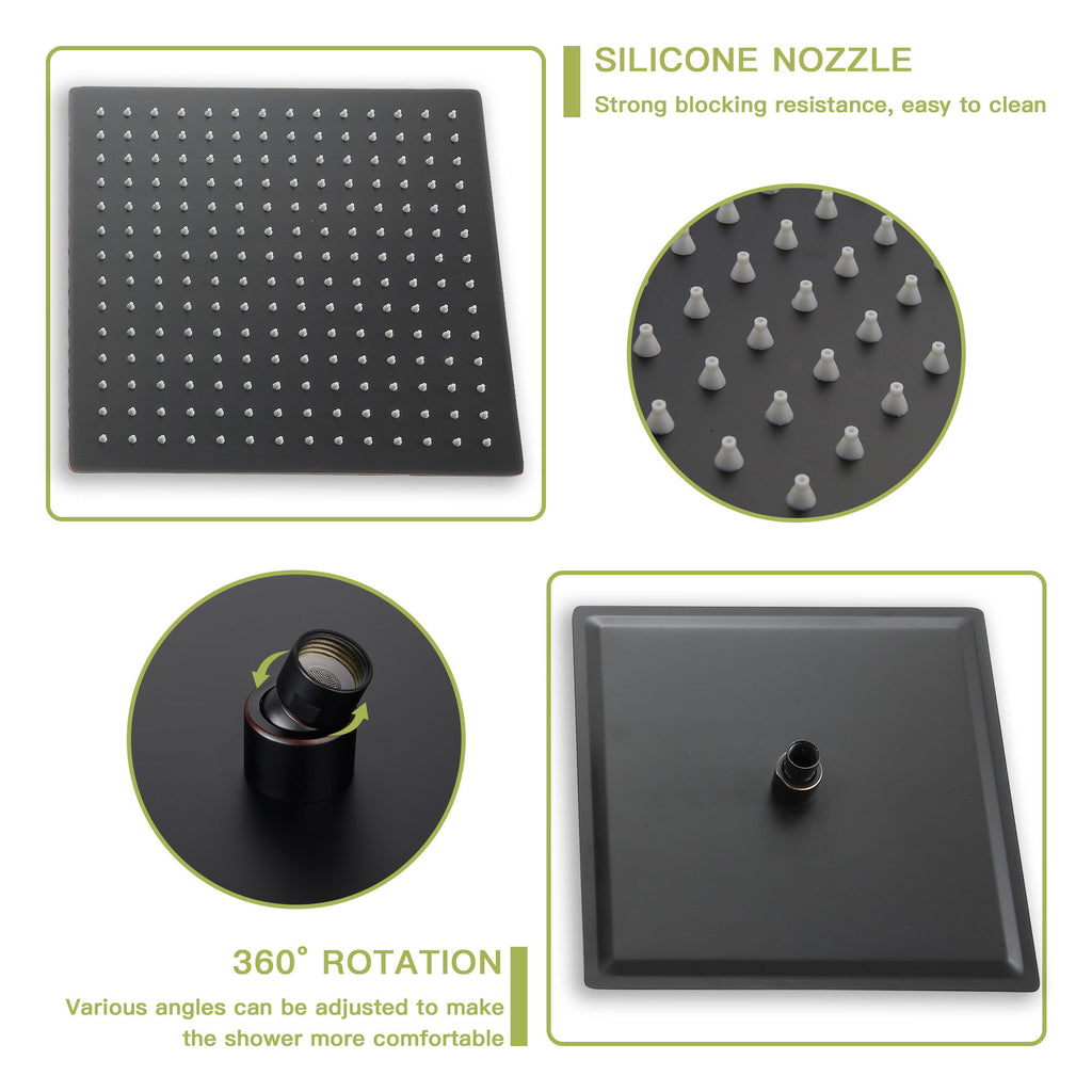 Wall Mounted Square Shower System With Adjustable Slide Bar, 12" Rainfall Shower Head - Oil-Rubbed Bronze