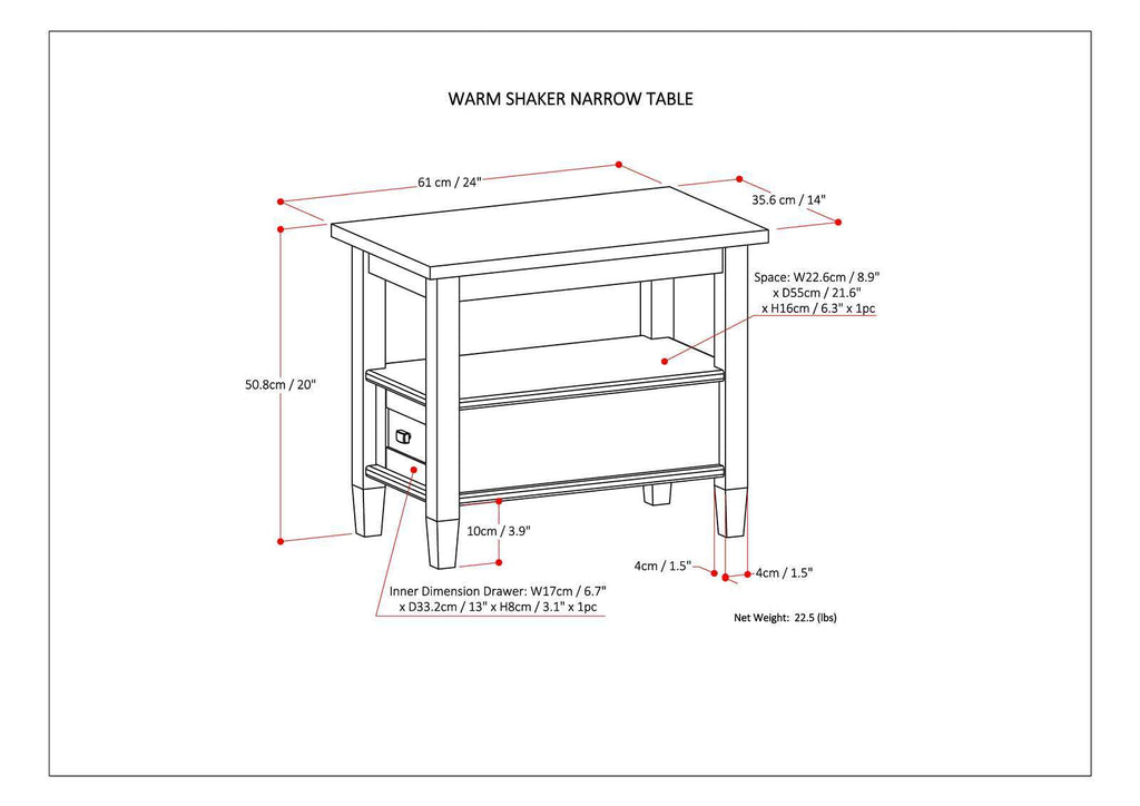 Warm Shaker - Narrow Side Table - Distressed Charcoal Brown