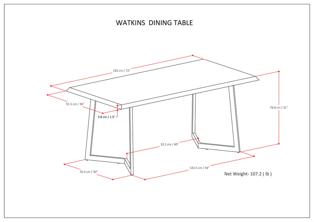 72.0"W x 36.0"D x 30.0"H - 107.1 lb