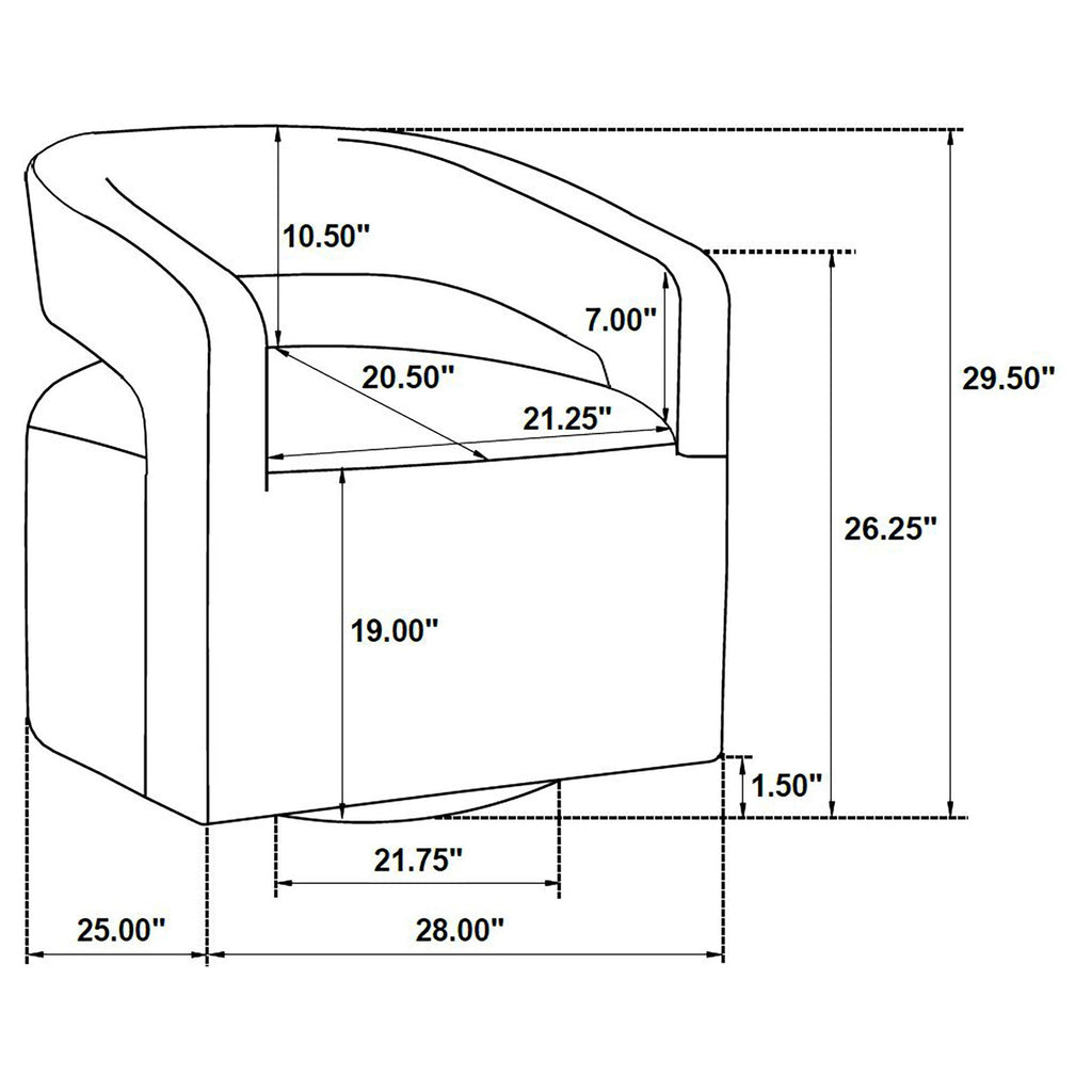 Curved form meets effortless movement in this modern swivel accent chair. With a rounded open back and tailored seat, it delivers sculptural balance and all-around comfort. Upholstered in textured boucle and built on a hidden swivel base, it glides smoothly to support dynamic living. Its compact footprint and graceful silhouette make it ideal for layering into lounge corners, reading nooks, or open floor plans seeking softness and versatility.