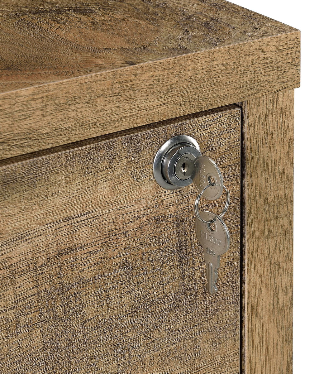 This 3-piece bedroom set includes a bookcase headboard and two coordinating nightstands designed for practical bedroom storage. Open cubbies on the headboard and hutches keep books and essentials within reach, while lockable top drawers add secure storage. Each nightstand features built-in USB-A and USB-C charging ports. Made from engineered wood and finished in a scratch-resistant laminate veneer, the set delivers durability and everyday convenience across a range of room styles.