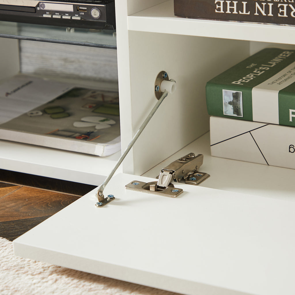 - DURABLE & STABLE: Made of P2 grade particleboard, this TV stand is scratch proof and waterproof, and easy to maintain. The modern and minimalist structure also provides great stability, with up to 110 pounds bearing capacity