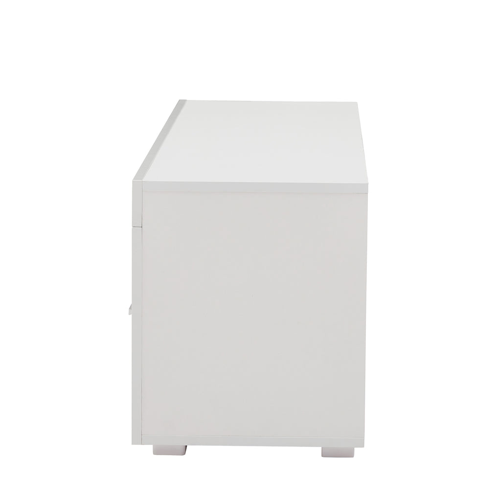 - PERFECT SIZE: 51(L)x 14(W)x 16(H)inch, this white TV console fit up to 55 inch TV. Spacious tabletop along with 2 large storage drawer satisfies all your display and storage needs in the bedroom or living room