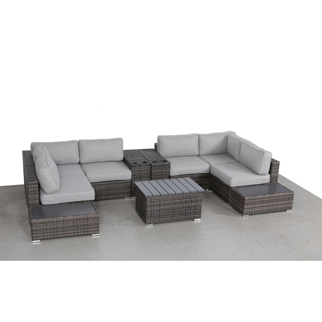 Outdoor 8 Person Wicker Seating Set With Cushions - Grey Mix