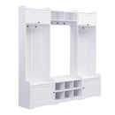 - Three Seating Sections:Strategically integrated between the cabinets, the three seating benches provide comfortable perches for putting on or removing shoes.