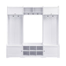 Wide Hall Tree With Shoe Storage, 4 In 1 Entryway Bench With 8 Cubbies, 7 Coat Hooks & Adjustable Shelf For Hallway - White