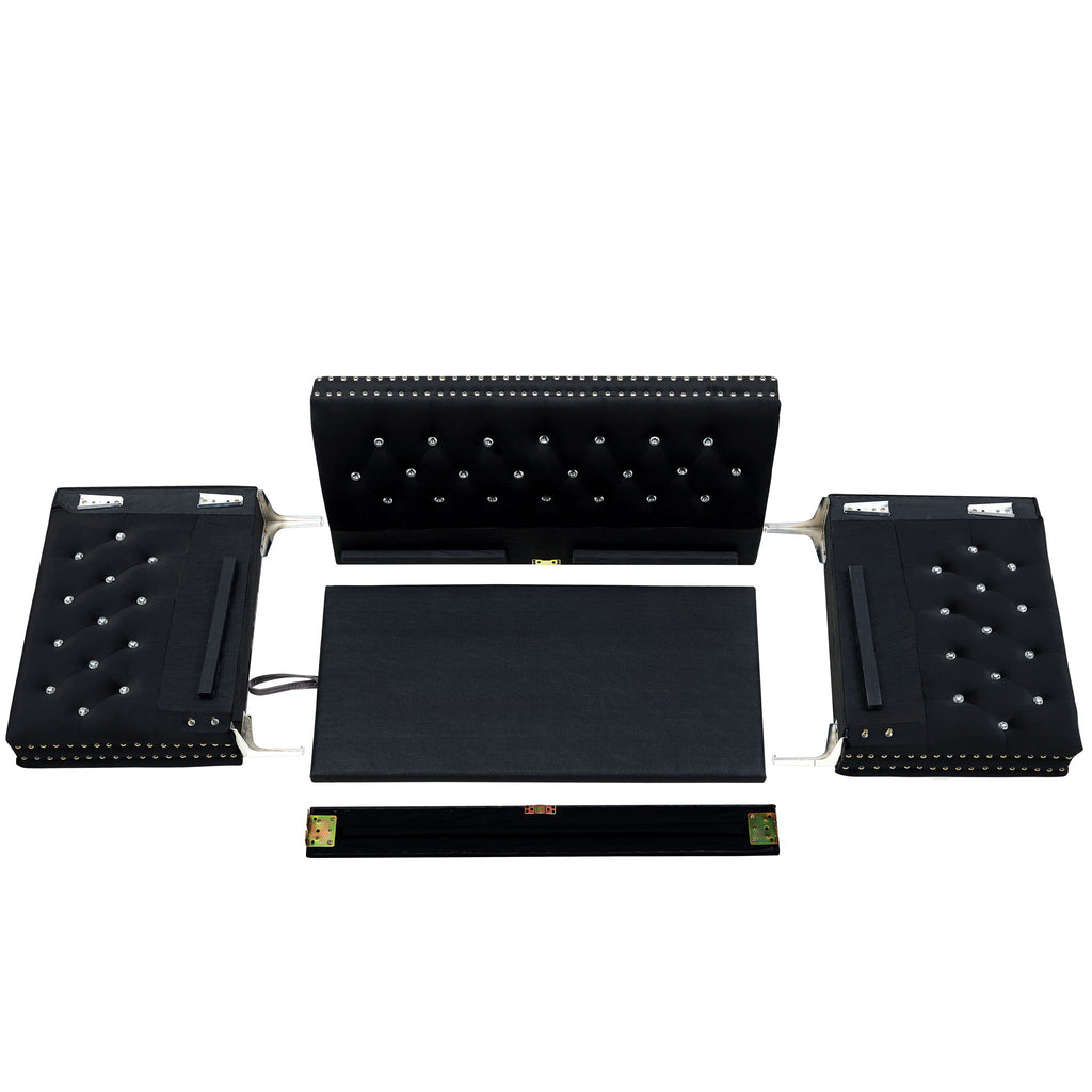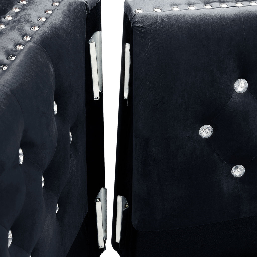 Wide Sofa With Jeweled Buttons Square Arm, 2 Pillows - Black