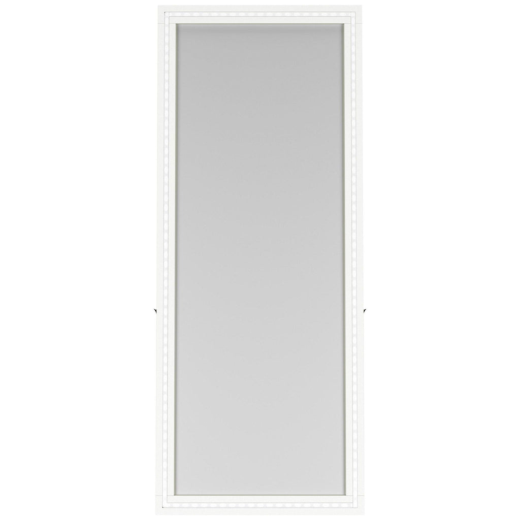 Dress up a dressing area or seating group with the glamour of a modern floor mirror. The full length design features a decorative frame complete with a support leg or its freestanding, perfect for defining an open living space or offering dimension elsewhere in your home. The mirror includes LED lighting, creating an inviting ambiance while providing light perfect for selecting jewelry or choosing your outfit. It features a neutral finish with silver trim that gleams in the light, creating a sense of depth and dimension. Choose the perfect spot for this freestanding floor mirror.