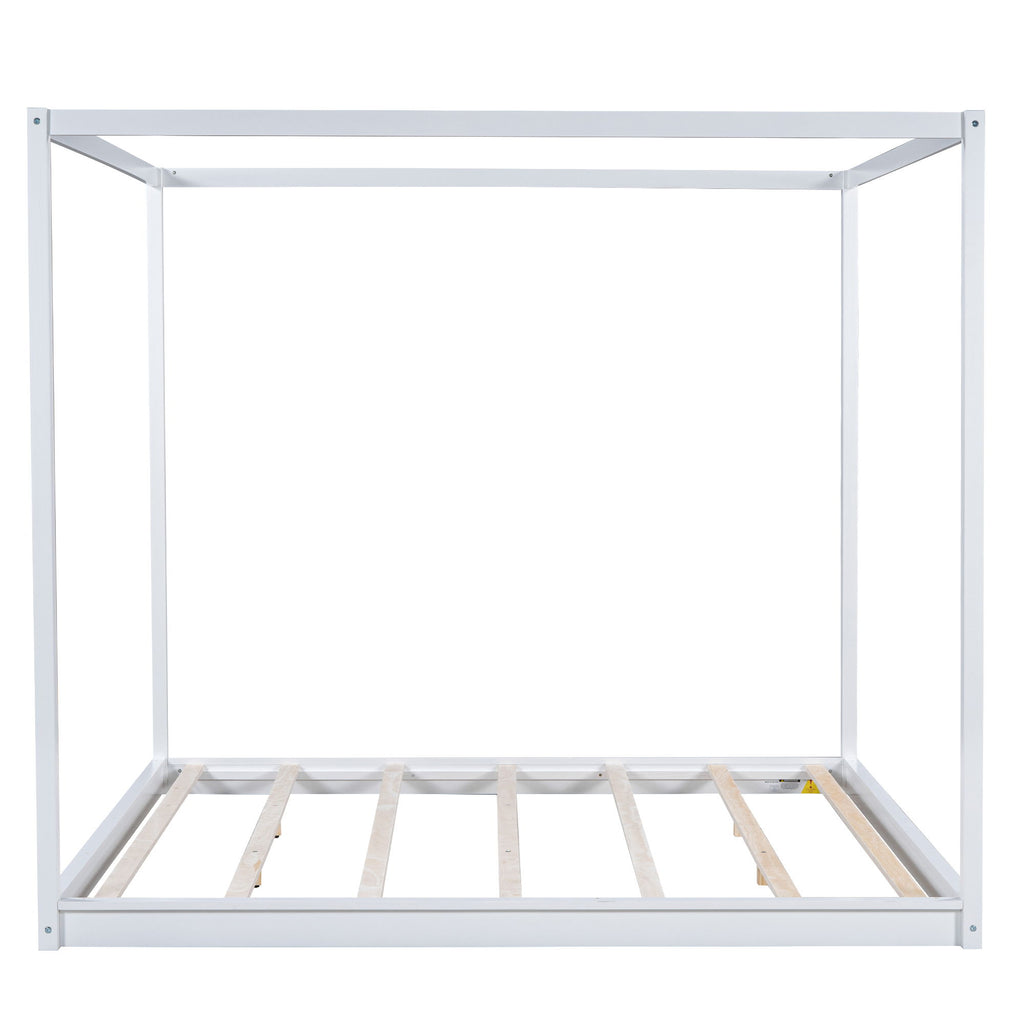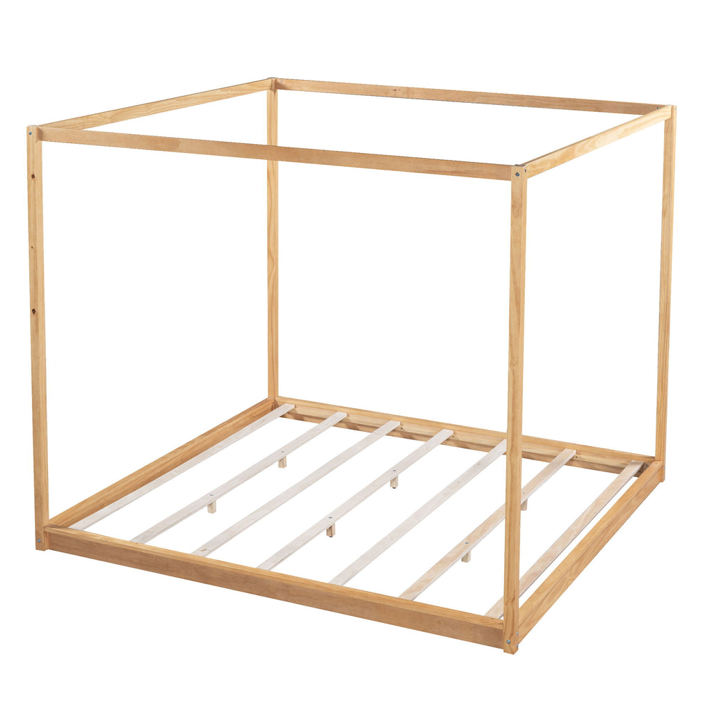 Queen Size Canopy Platform Bed With Support Legs - Natural