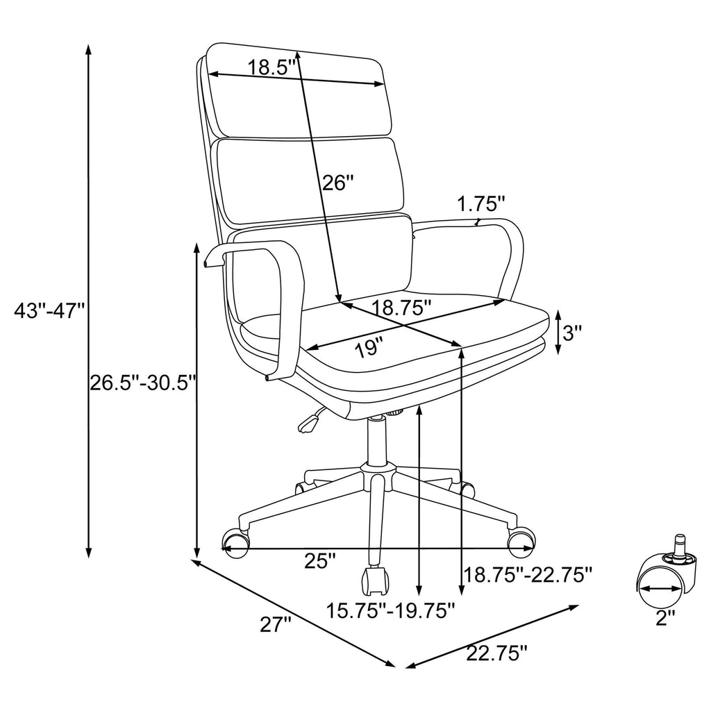 Update your workspace with this modern office chair. A chrome finish on the chair base and contoured arms are a modern touch as is the horizontal stitching on the seat back. This cushioned office chair features an ergonomically contoured back for ideal support and comfort, with armrests for added stability. This height-adjustable office chair comes with casters for easy mobility. Available in your choice of leatherette upholstery colors to suit the look of your office.